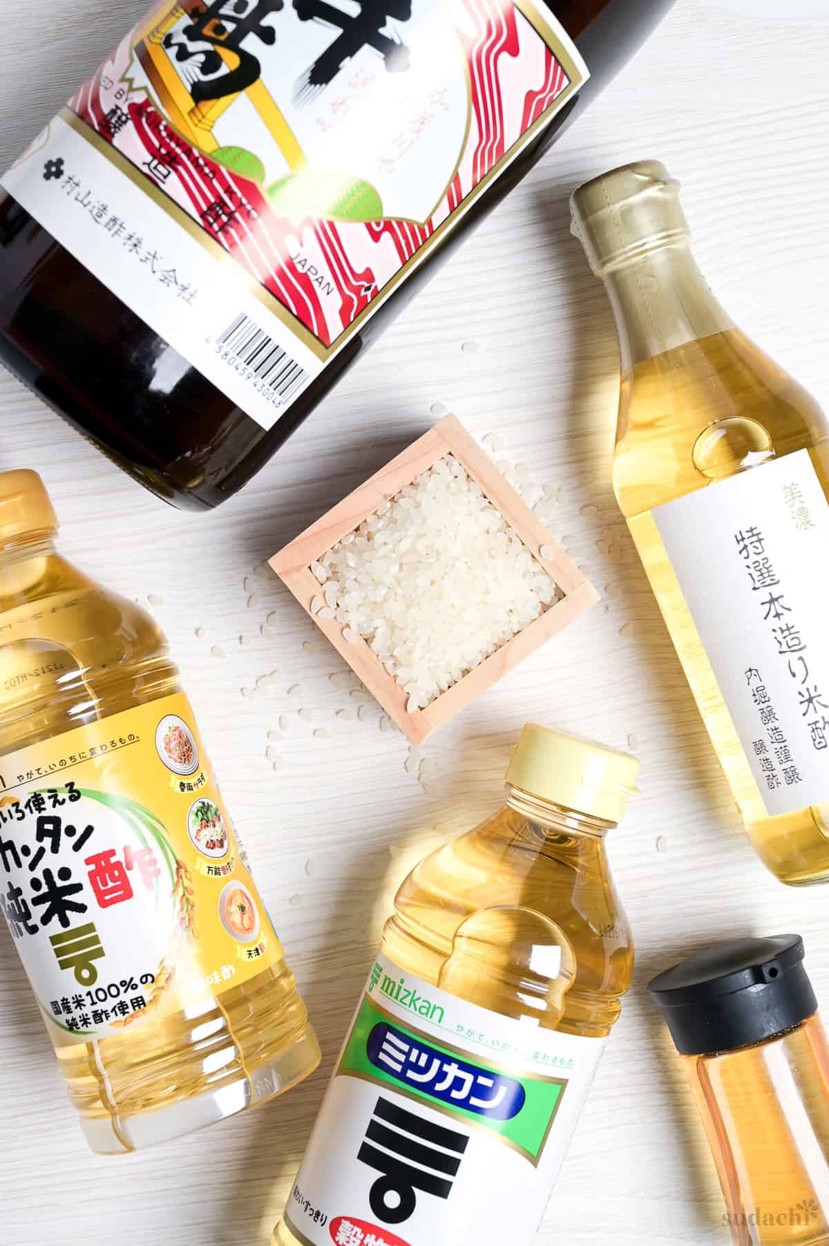 - Mizkan Junmai-su (pure rice vinegar) is a meaningful step up. Made entirely from rice without added alcohol, it has noticeably richer umami.