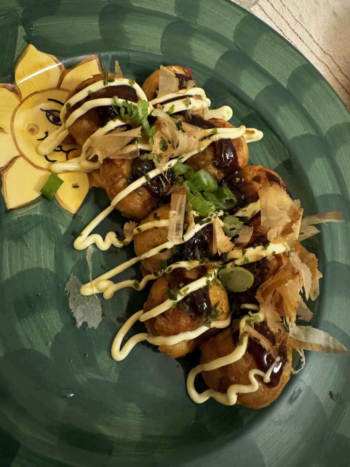 - What is it? Japanese octopus balls with crispy outsides and gooey, savory insides.